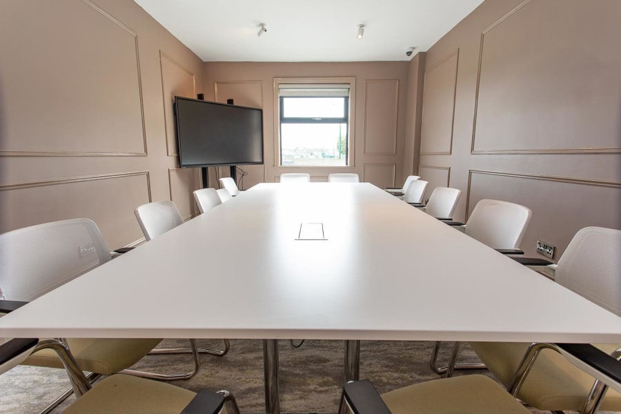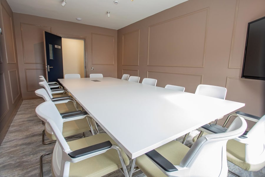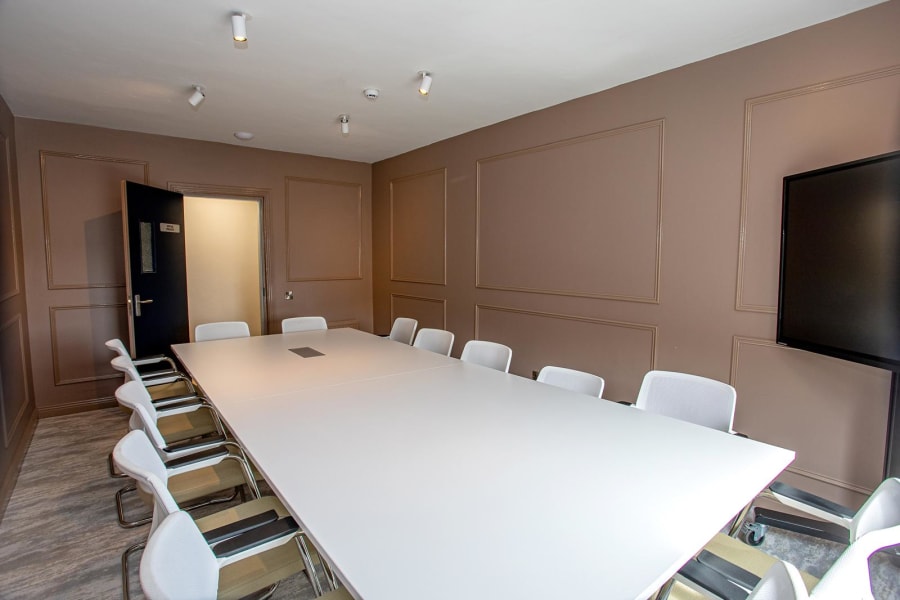 Our boardroom with a large interactive screen is a modern, professional space designed for meetings, presentations, and collaborative work. The room blends functionality with technology, offering a sophisticated environment for decision-making and strategy sessions.