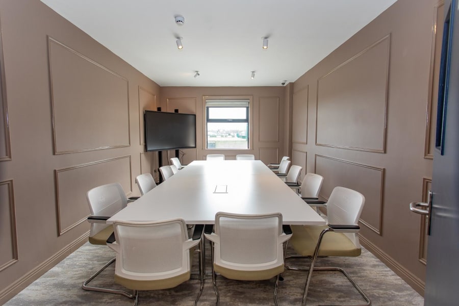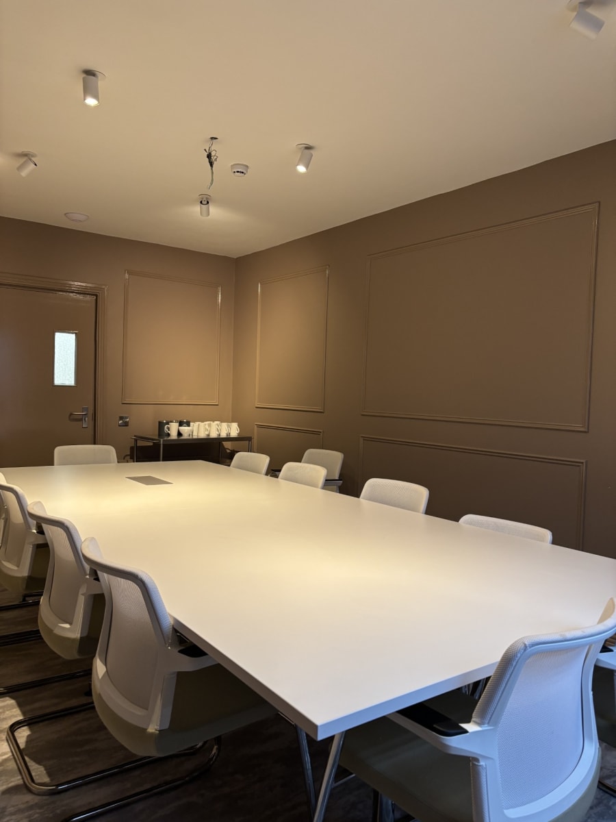 Walls and Decor: The walls are painted in neutral tones, creating a calm and professional atmosphere with soundproofing panels to enhance privacy throughout your meetings . This boardroom is designed to facilitate high-level meetings, providing a professional, well-equipped environment where teams can collaborate effectively using the latest technology.