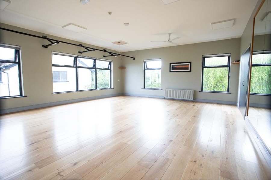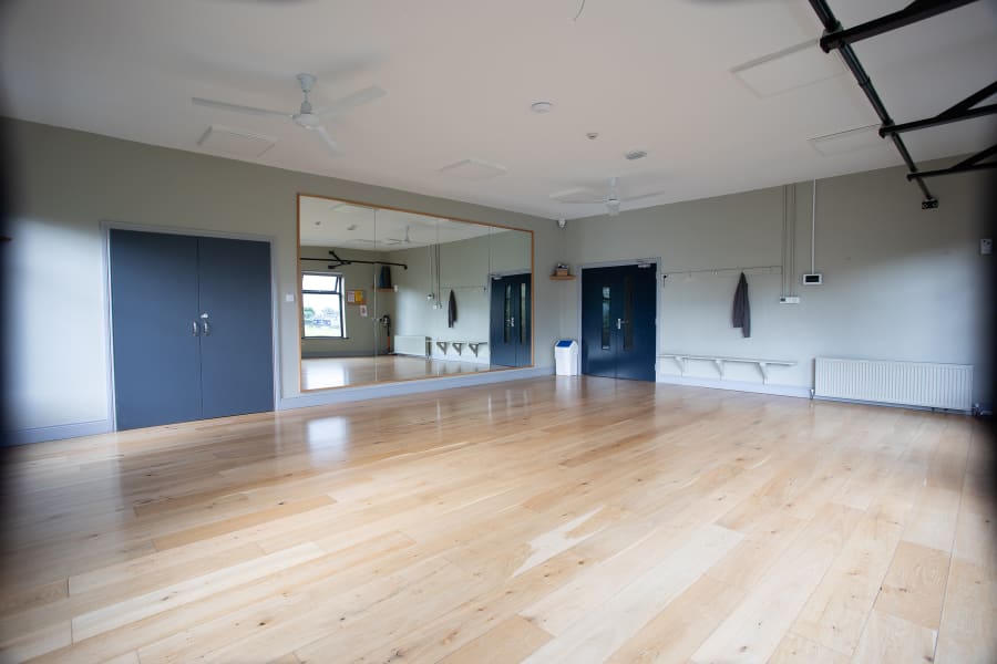Our dance studio is a vibrant, energetic space designed specifically for dance practice, instruction, and choreography. It features an open floor plan with smooth, sprung flooring, which is made of wood to cushion the impact of dancing and reduce the risk of injury. The wall is lined with a full-length mirror, enabling dancers to observe and perfect their movements.The room is well-lit, often with bright, natural light from large windows or with overhead lighting that ensures the space is evenly illuminated.There is also a small area with seating for instructors / students to rest and store their belongings.